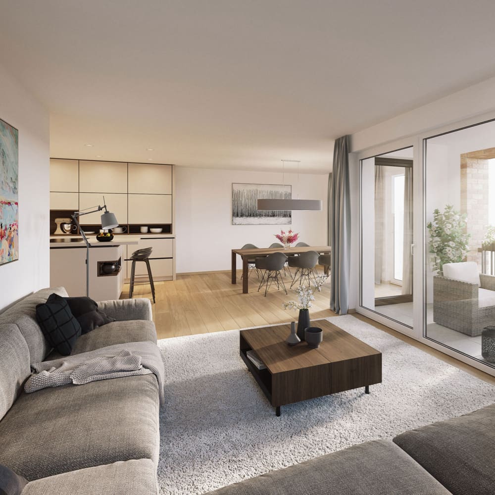 Auf einer Gesamtwohnfläche von 2.700 Quadratmetern erstrecken sich die überwiegend 2- bis 3-Zimmer-Wohnungen, die alle über eine Terrasse oder einen Balkon verfügen und barrierefrei konzipiert werden. Für die Barrierefreiheit sorgt unter anderem ein Aufzug, der alle Geschosse erschließt. Autofahrerinnen und Autofahrer können sich über eine angehnehme Parksituation dank Tiefgarage freuen, die ebenfalls per Aufzug erreichbar ist.